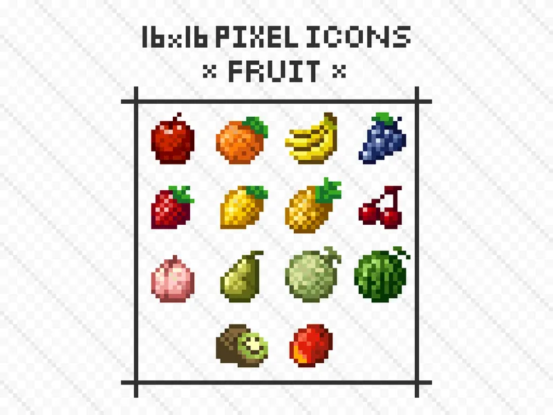 16x16 Pixel Icons: Fruit Set